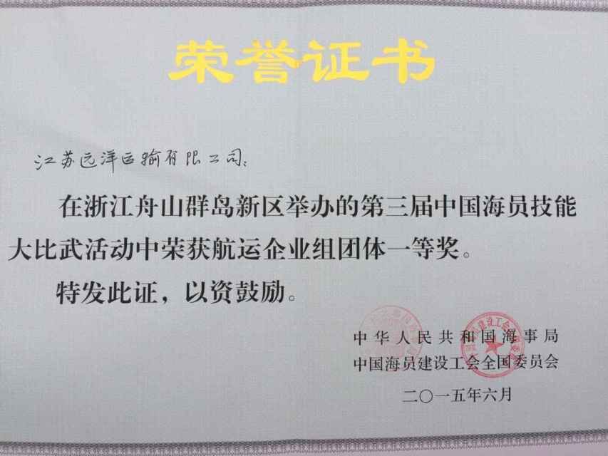 船員大比武團(tuán)體一等獎(jiǎng)獎(jiǎng)狀
