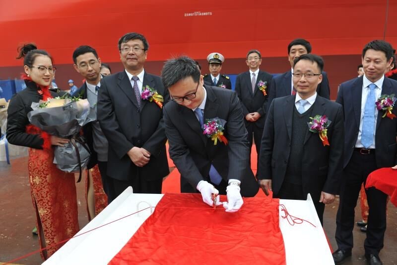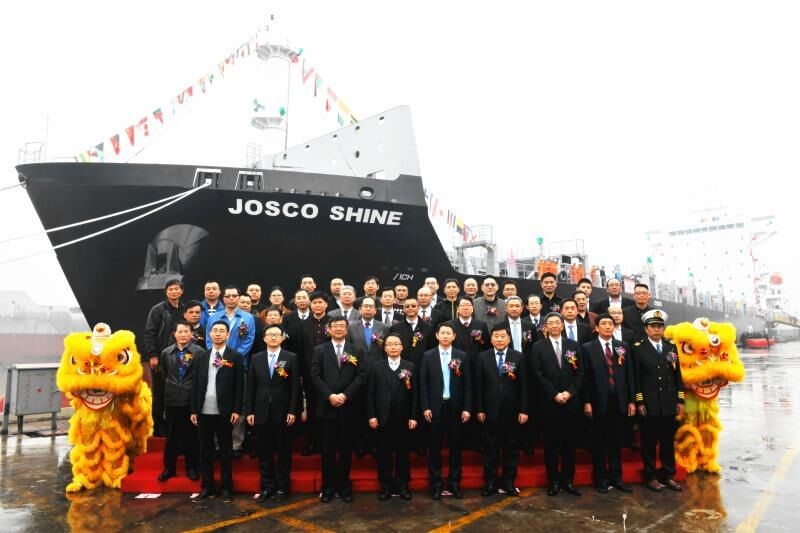 2018年3月15日上午,繼上周首艘“JOSCO LUCKY”輪的順利交付,今天又在揚(yáng)子江船業(yè)集團(tuán)公司舉行了“JOSCO SHINE”輪的命名交付儀式。江蘇遠(yuǎn)洋運(yùn)輸有限公司總經(jīng)理毛雪強(qiáng)為新船命名交付致辭,副總經(jīng)理李斌為新船砍纜開啟香檳,副總經(jīng)理瞿名澤為新船命名。江蘇揚(yáng)子江船業(yè)集團(tuán)公司、NK船級(jí)社以及太倉(cāng)港集裝箱海運(yùn)有限公司等相關(guān)單位的領(lǐng)導(dǎo)和嘉賓蒞臨了儀式現(xiàn)場(chǎng)。
