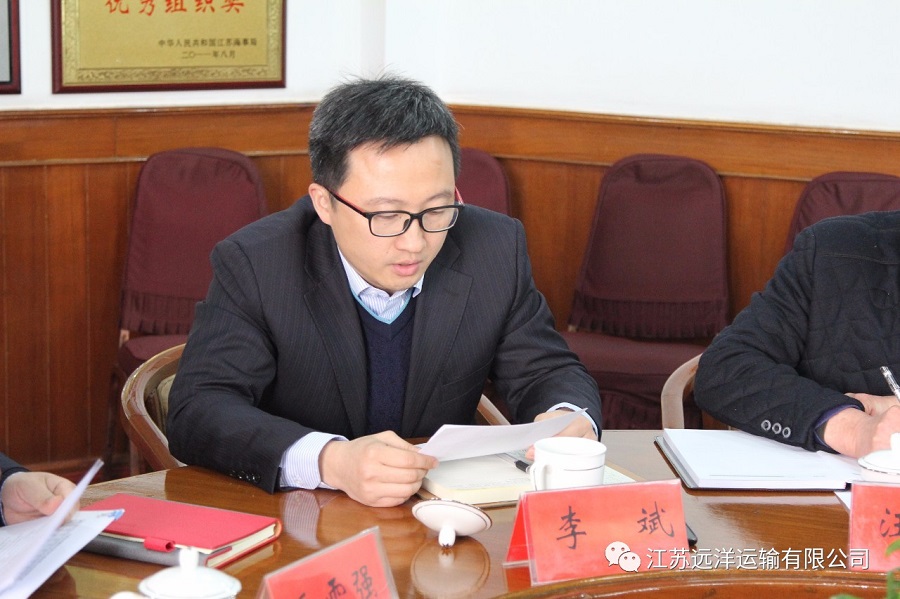 2018年3月16日江蘇遠洋運輸有限公司在南京召開了新世紀貨運年度工作會議。會議由公司黨委副書記、副總經理李斌同志主持,公司總經理毛雪強、黨委副書記郭玉高、紀委書記戴偉等參加了會議。