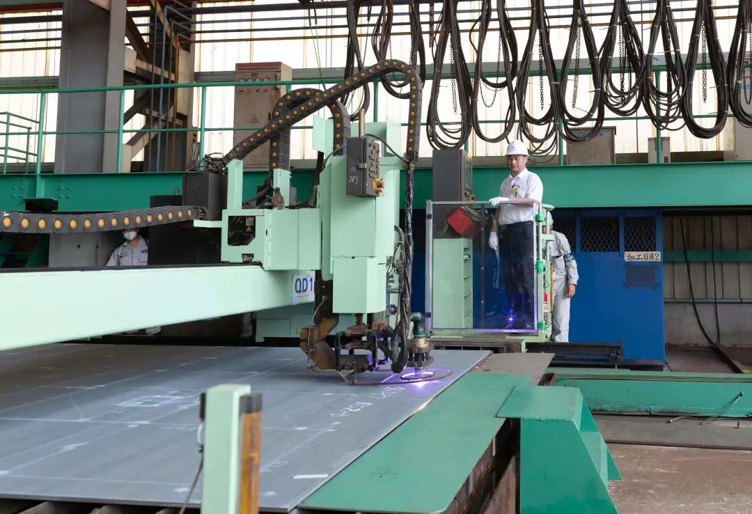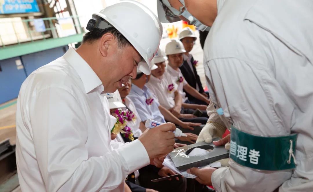 在加工車間,江蘇遠(yuǎn)洋黨委書記、董事長晁陽對鋼板進(jìn)行確認(rèn),紀(jì)委書記丁邦林按下點(diǎn)火按鈕,一道弧光閃爍,現(xiàn)場響起了熱烈的掌聲。副總經(jīng)理劉冰代表船東方簽署了開工證明,這標(biāo)志著新船SS297正式開工建造。