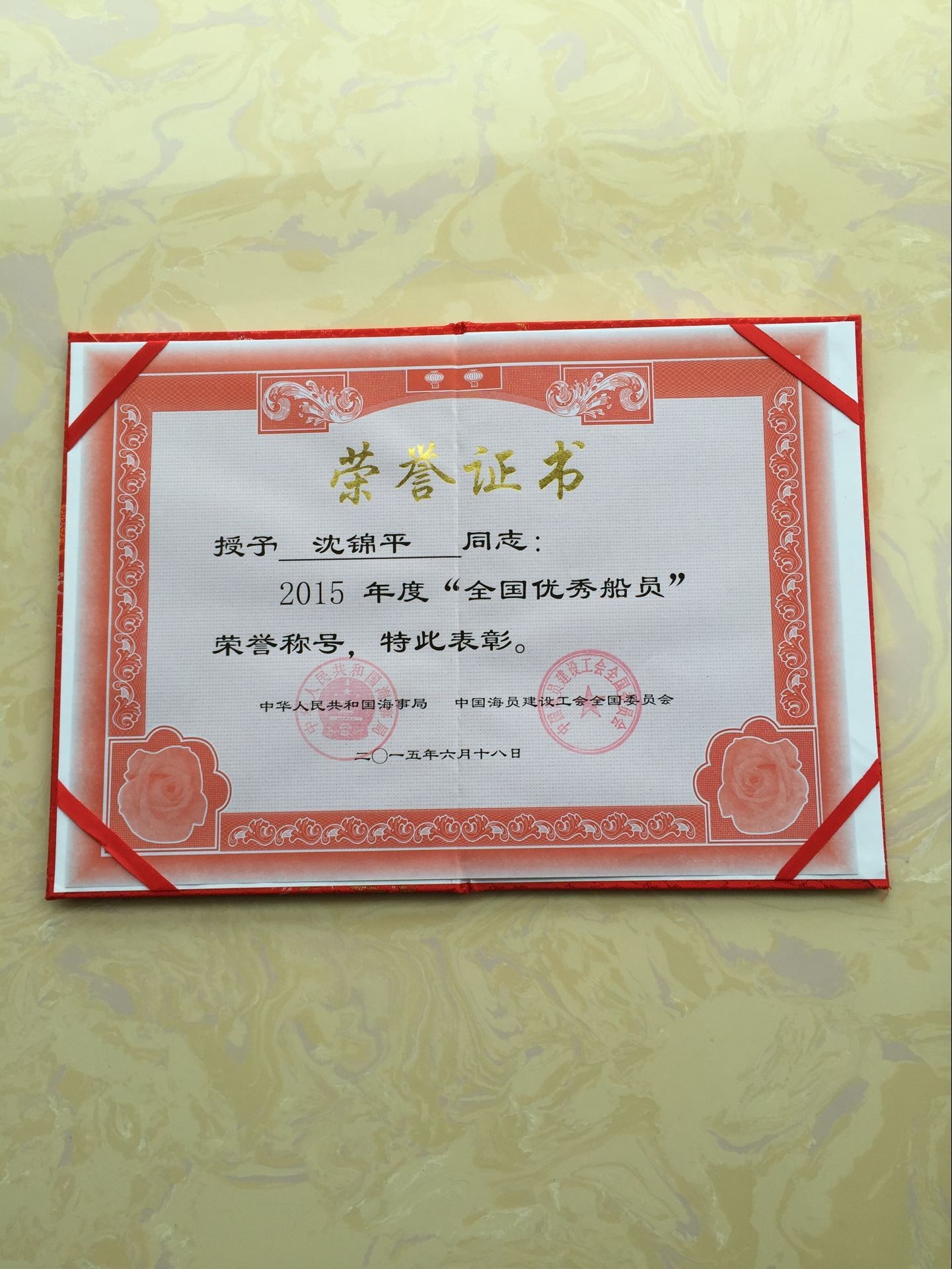2015年6月沈錦平被國(guó)家海事局中國(guó)海員建設(shè)工會(huì)授