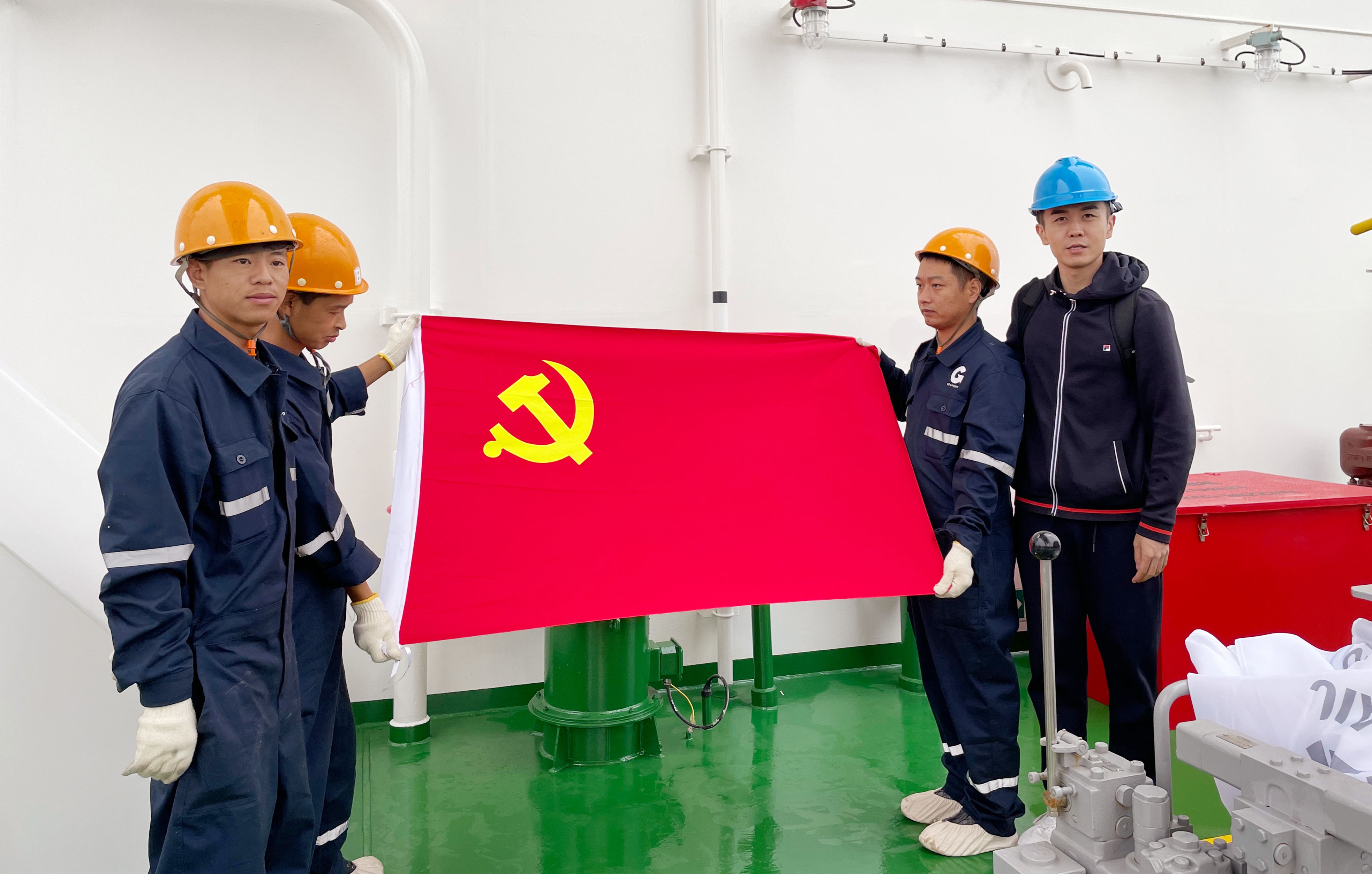 10月14日下午13時(shí),雨后初晴。大連中遠(yuǎn)海運(yùn)川崎船廠的海面,分外平靜。海風(fēng)吹來(lái),休息區(qū)里船廠的工人們紛紛裹緊外套,感受到了來(lái)自北方深秋的陣陣涼意。而一旁靜靜靠泊的新造船“北部灣桂林”輪邊,來(lái)自江蘇遠(yuǎn)洋省外輪供應(yīng)公司黨支部的“保供運(yùn)輸突擊隊(duì)”隊(duì)員們正不畏寒冷,在黨員郭慶帶領(lǐng)下,甩開膀子、熱火朝天地抓緊進(jìn)行著船用物料供應(yīng)。