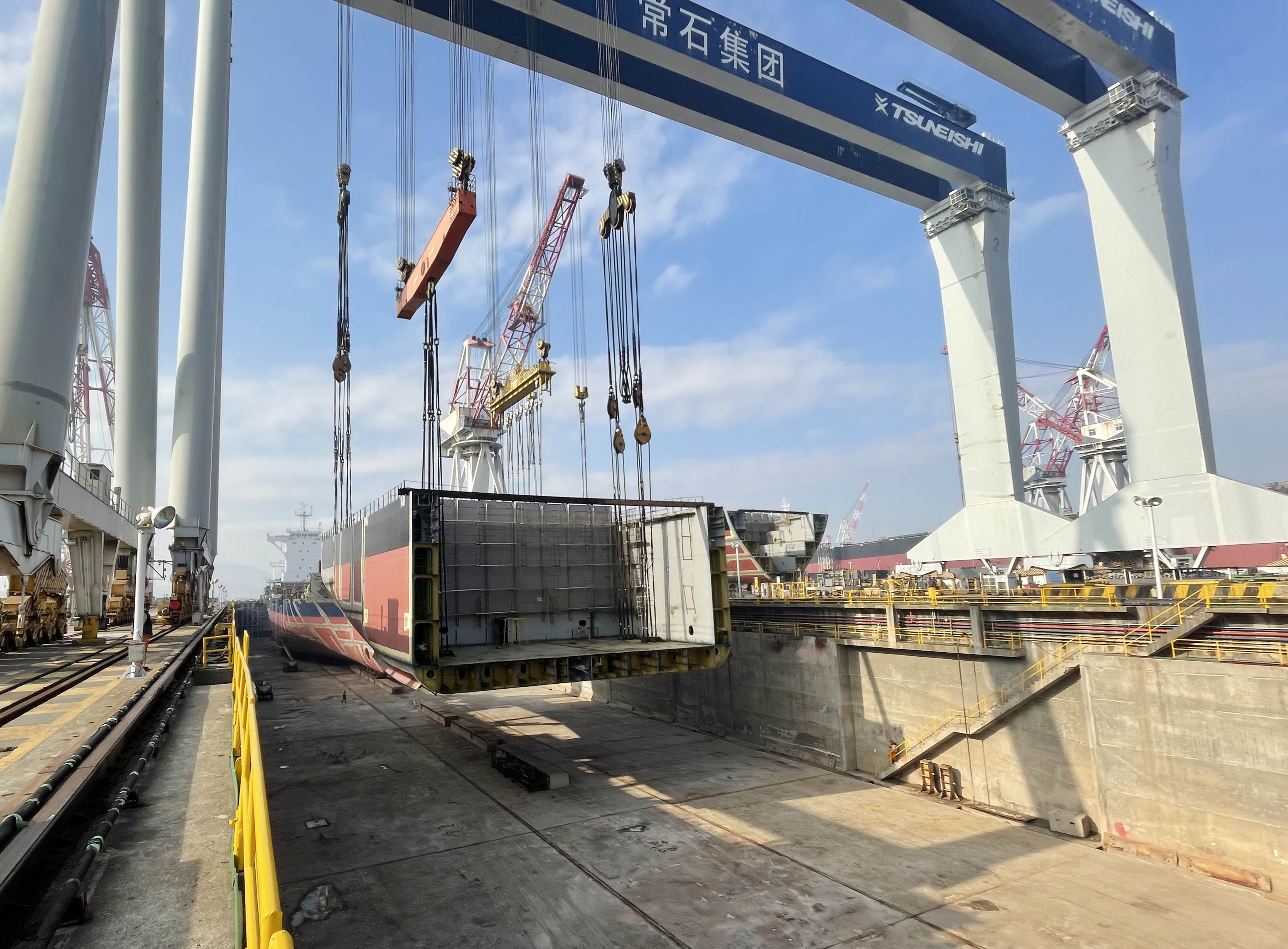 1月4日,經(jīng)過近五個月分段監(jiān)造,江蘇遠(yuǎn)洋投資建造的1100箱位SS297新型節(jié)能環(huán)保集裝箱船迎來重要節(jié)點(diǎn)——正式開始“塢內(nèi)搭載”即龍骨鋪裝。該船為江蘇遠(yuǎn)洋在常石集團(tuán)投資建造的三艘1100箱位中的首艘,將于6月交付使用。