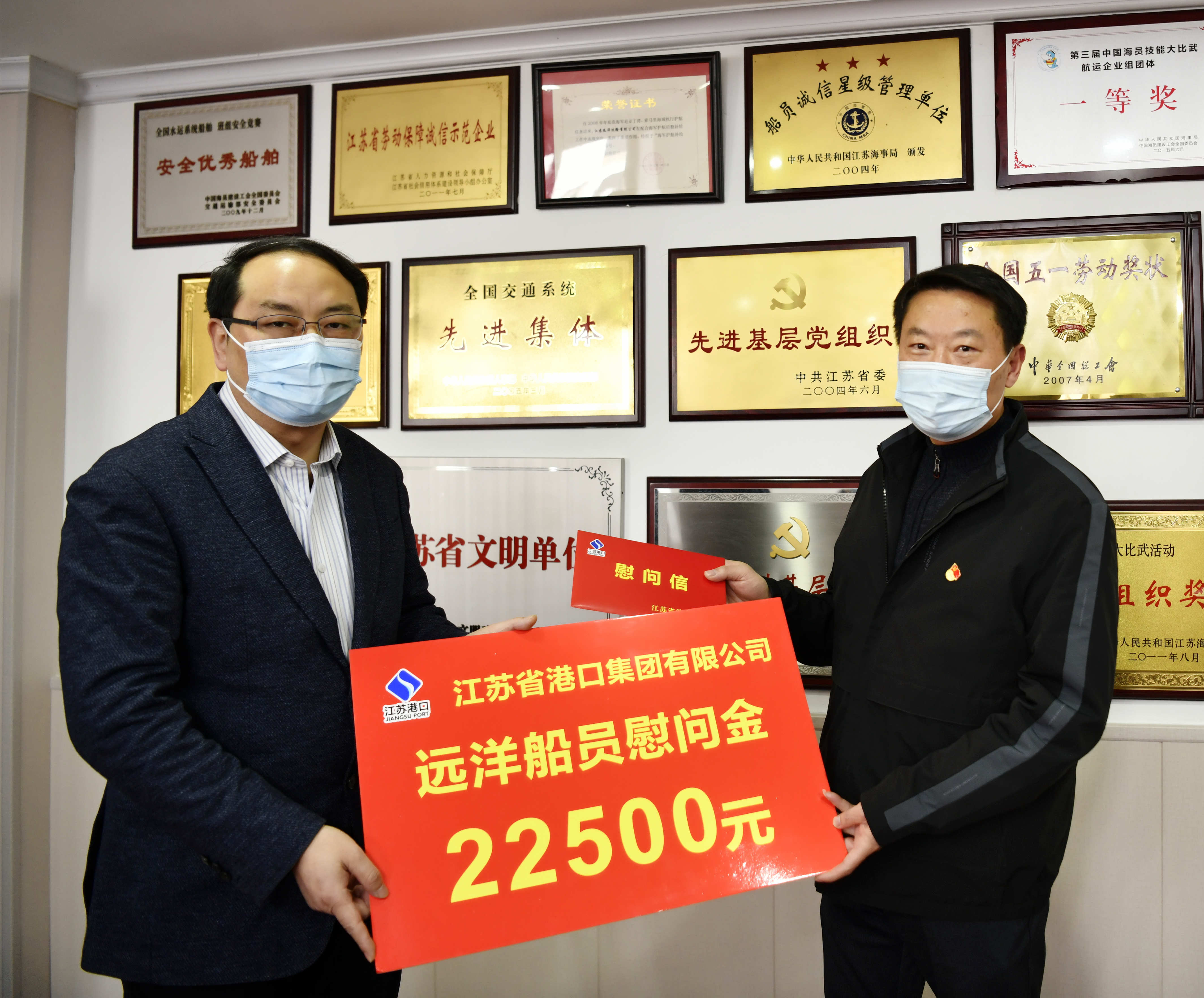 為確保節(jié)日期間安全生產(chǎn)形勢穩(wěn)定和疫情防控工作扎實有效,1月21日,省港口集團黨委委員、副總經(jīng)理譚瑞兵帶隊到江蘇遠洋開展2022年春節(jié)前安全生產(chǎn)和疫情防控工作檢查,并對遠洋船員和困難員工進行慰問。集團辦公室、科技裝備部、黨委組織部、審計法務(wù)部負責人及安全環(huán)保部、群眾工作部相關(guān)人員,公司黨委書記、董事長晁陽,總經(jīng)理、黨委副書記戴偉及其他領(lǐng)導(dǎo)班子成員陪同檢查、慰問。