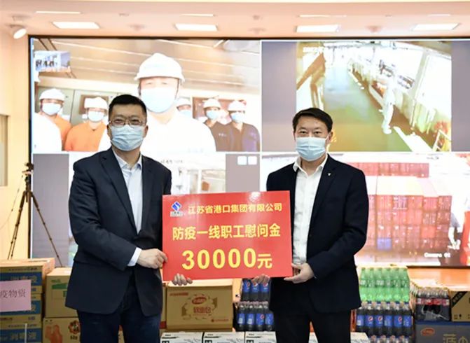 在南京港江北集裝箱公司,關(guān)永健向疫情期間堅(jiān)持奮戰(zhàn)在疫情一線的“安全班”班組職工送上了慰問(wèn)金和慰問(wèn)品。