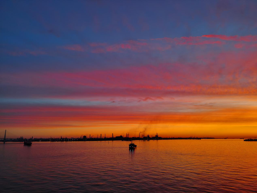 過往船舶仿佛融入了這幅美妙畫卷之中。