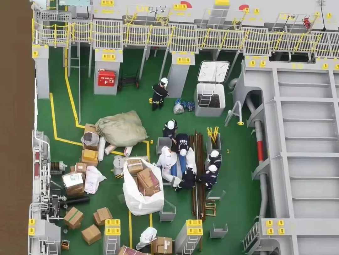 9月3日,第二批接船船員冒雨抵達(dá)秀山,在躲避臺風(fēng)的同時完成了三天兩次核酸檢測。臺風(fēng)過后,經(jīng)協(xié)商要進(jìn)行第二次試航,原計劃9月6日清關(guān)之后供物料和綁扎件,現(xiàn)在只能推遲了。9月7日早上,第一批試航的9名船員再次登船參加第二次試航,于8日上午順利完成第二次試航任務(wù)返回青山碼頭。