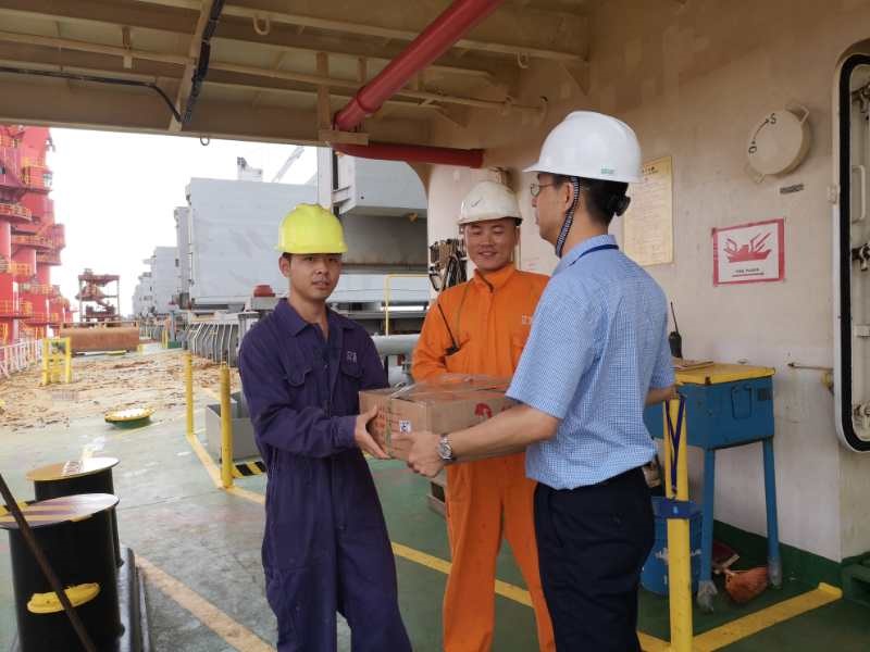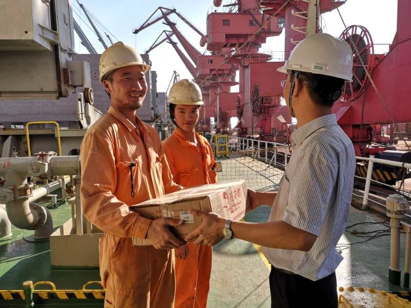 8月16日和17日,公司紀(jì)委書(shū)記戴偉率安監(jiān)部、船管部赴靠泊在嵐山和連云港的“江遠(yuǎn)太倉(cāng)”和“江遠(yuǎn)惠州”輪,代表公司慰問(wèn)奮戰(zhàn)在盛夏酷暑一線船員兄弟們,并為他們送上慰問(wèn)金和一些清涼飲料及防暑降溫食品。