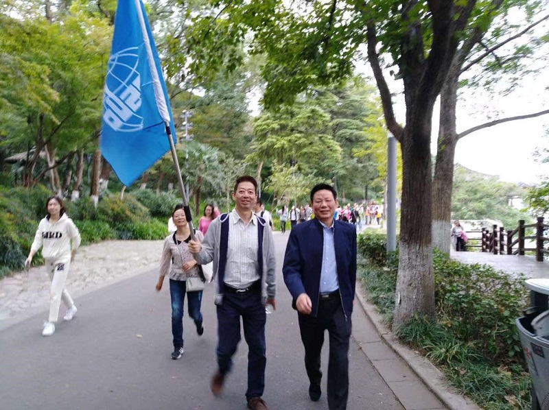 清晨玄武湖畔,微風(fēng)送來陣陣桂香,參與活動的職工們個個心情愉悅、精神飽滿。8點(diǎn)30分,由總經(jīng)理李斌宣布活動正式開始。職工們浩浩蕩蕩地從玄武門出發(fā),三面旗幟迎風(fēng)飄揚(yáng),在清晨熙熙攘攘的人群中鮮艷異常。