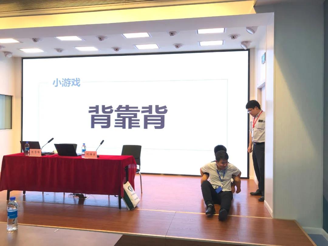 劉海寶講師以案例介紹的形式,對工傷事故發(fā)生的原因進(jìn)行深入剖析,并邀請兩名職工參與“背靠背”的小游戲,使在場聽眾深刻意識到團隊工傷預(yù)防的重要性。