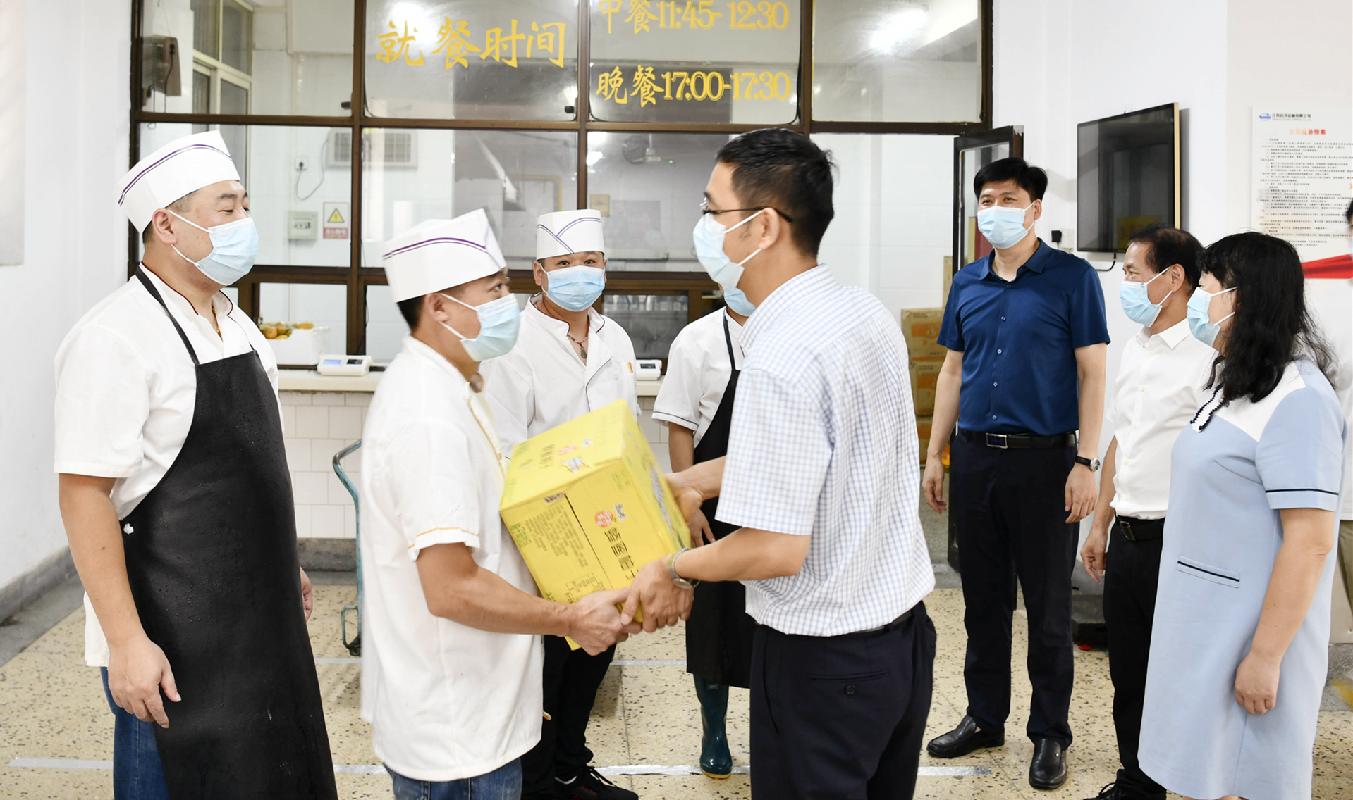戴偉一行看望慰問(wèn)了奮戰(zhàn)在疫情防控一線(xiàn)的保潔、保安及食堂工作人員并為大家送上慰問(wèn)品,把公司黨委和工會(huì)的深情關(guān)懷送到每位職工手中。戴偉詳細(xì)了解了各項(xiàng)疫情防控措施落實(shí)情況,詢(xún)問(wèn)一線(xiàn)工作中遇到的困難和需求,并向高溫下堅(jiān)守防控一線(xiàn)、做好服務(wù)保障工作的基層工作者表示感謝。他叮囑大家在“高溫+疫情”的雙重考驗(yàn)下,一定要注意身體健康、做好自我防護(hù)、加強(qiáng)責(zé)任意識(shí),毫不放松抓緊抓實(shí)抓細(xì)疫情防控工作,為打贏疫情防控阻擊戰(zhàn)提供堅(jiān)實(shí)保障。同時(shí)也希望公司食堂不斷提升烹飪技術(shù)、提升菜品質(zhì)量、提升服務(wù)水平、尤其注重食品衛(wèi)生安全,讓廣大職工在特殊時(shí)期吃得更營(yíng)養(yǎng)、更滿(mǎn)意、更健康、更放心。