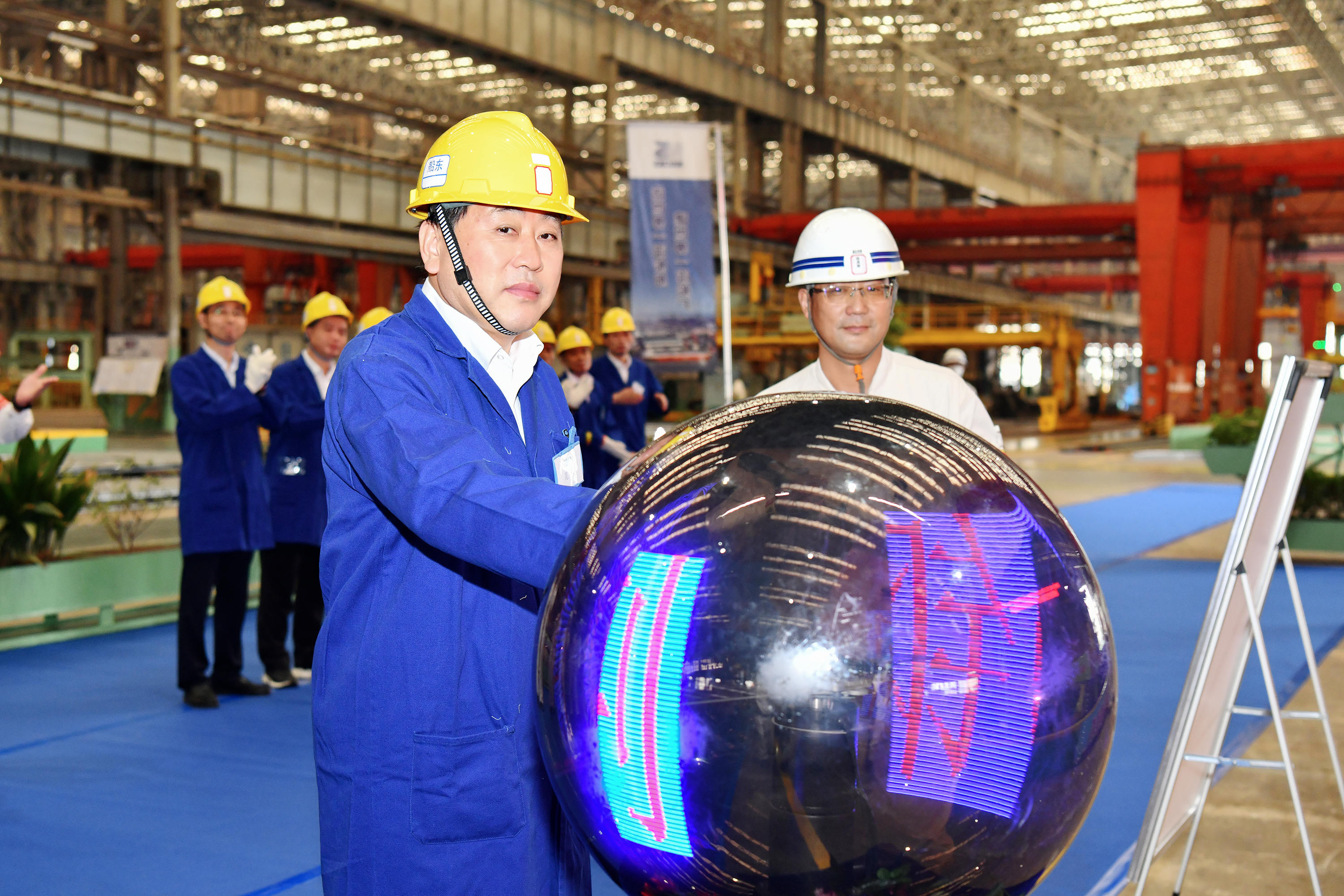 在簡潔莊重的儀式現(xiàn)場,晁陽莊重觸摸“幸運”球后,切割機精準(zhǔn)點火。隨著一道弧光閃過,江蘇遠(yuǎn)洋首艘6.4萬噸超靈便型散貨船正式開工建造。
